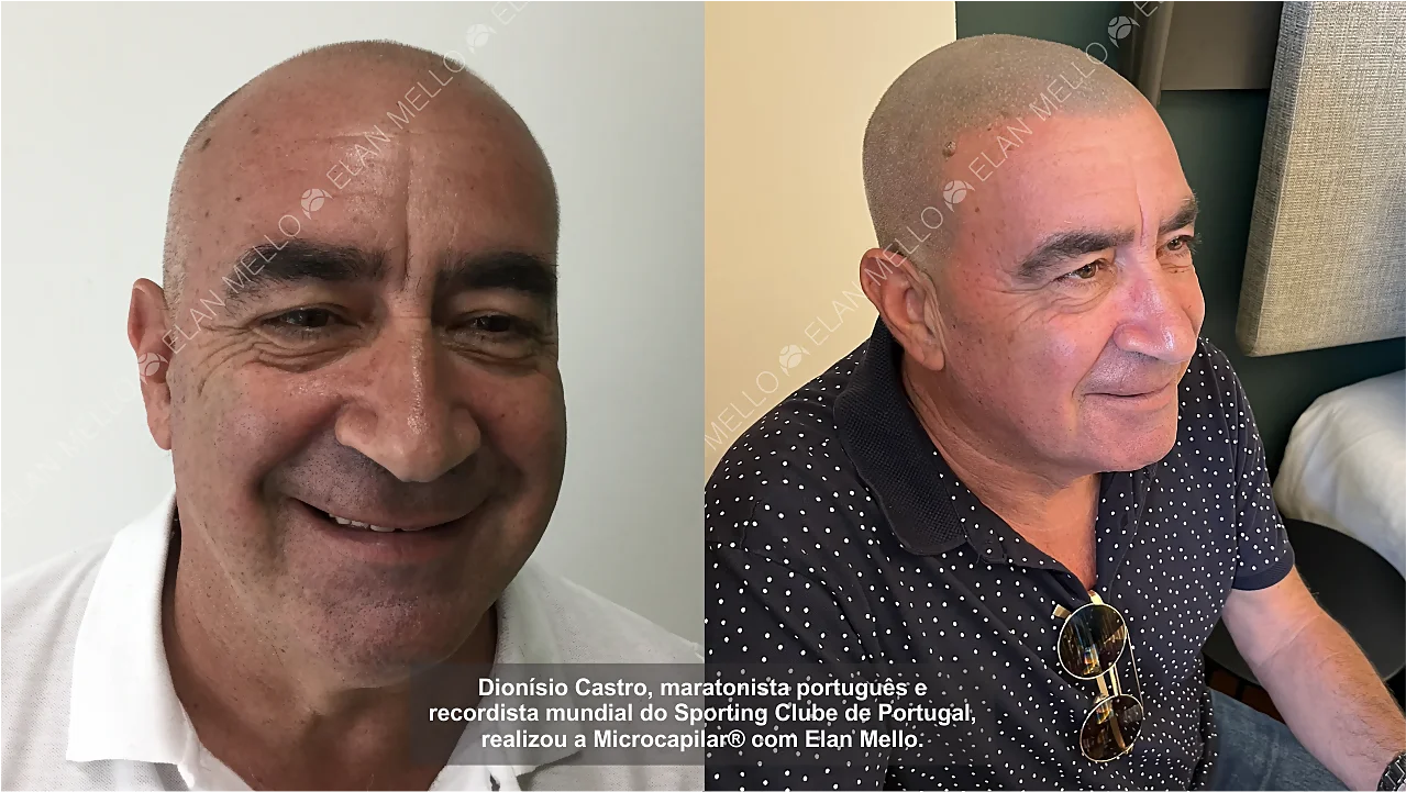 Dionísio Castro é recordista mundial de maratona ao lado do seu irmão gémeo Domingos Castro, ambos ícones do Sporting Clube de Portugal e conhecidos como os “Gémeos Castro” e “Irmãos Castro”, realizou a Microcapilar® com Elan Mello.